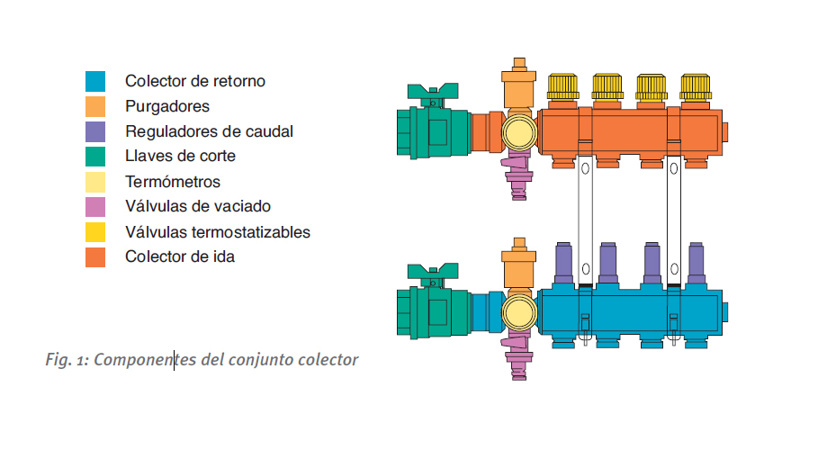 Los colectores suelen estar equipados con varios componentes clave, como válvulas de regulación, caudalímetros y termómetros. Familiarízate con la ubicación y función de cada uno de estos componentes: